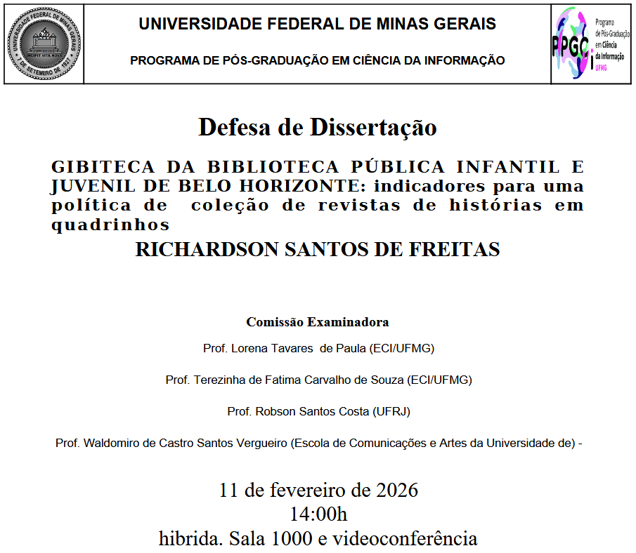 comunicamos a data de defesa de dissertação de mestrado de Richardson Santos de Freitas, sob a orientação da Profa. Lorena Tavares de Paula.